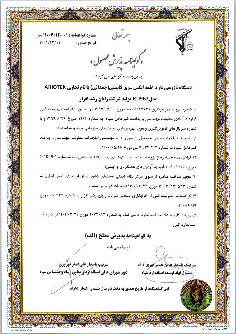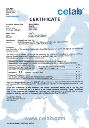 گواهینامه های آزمون استاندارد ایمنی ایکس ری