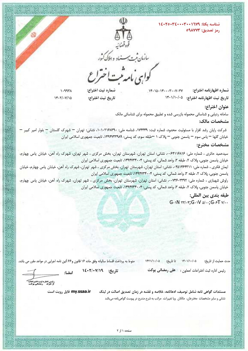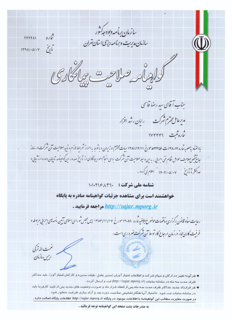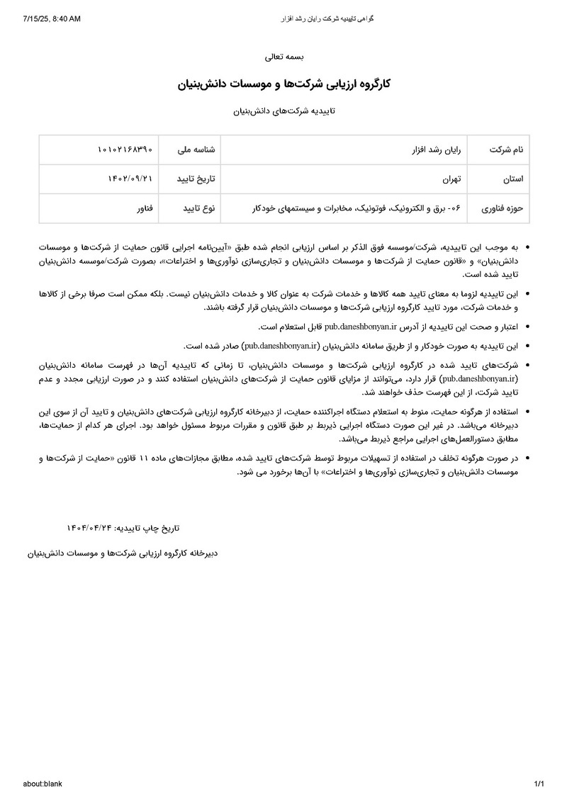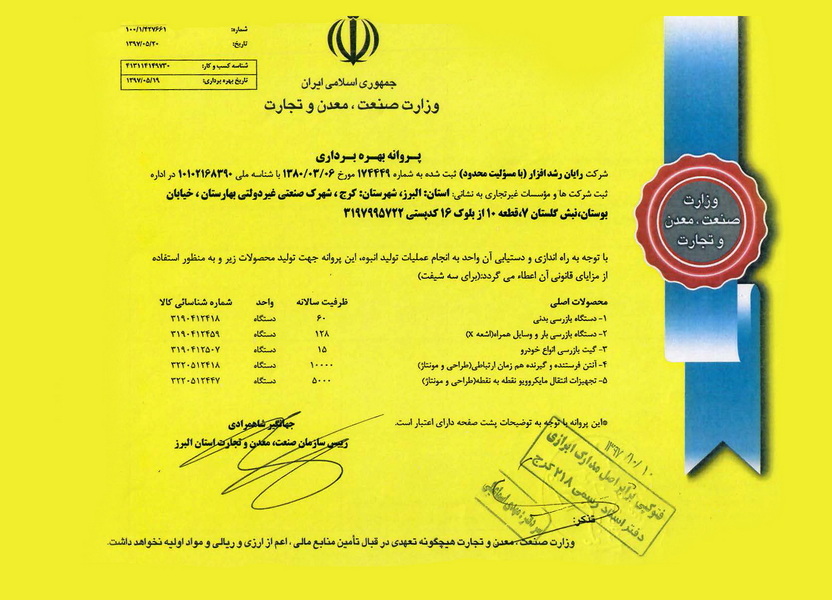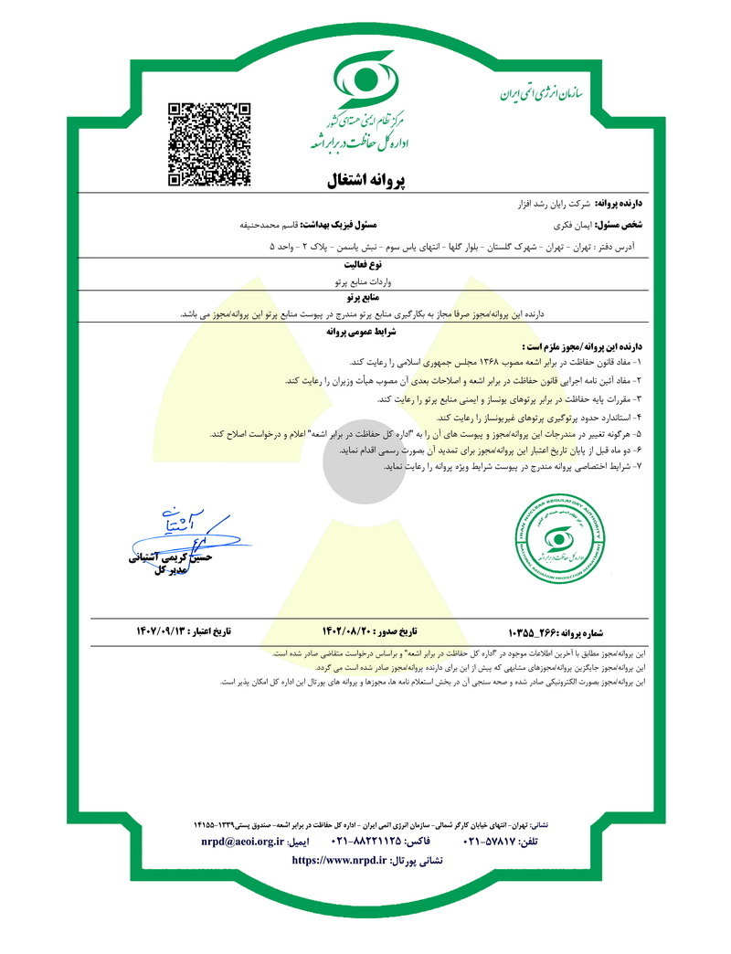 به شرکت دانش بنیان رایان رشد افزار اجازه داده می شود با رعایت استاندارد ملی4232-2-091 و قوانین و مقررات ذیربط از علامت استاندارد دانش نماد برای
