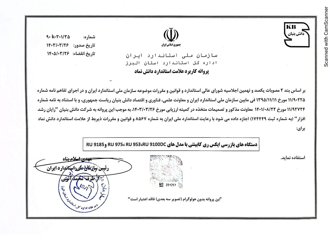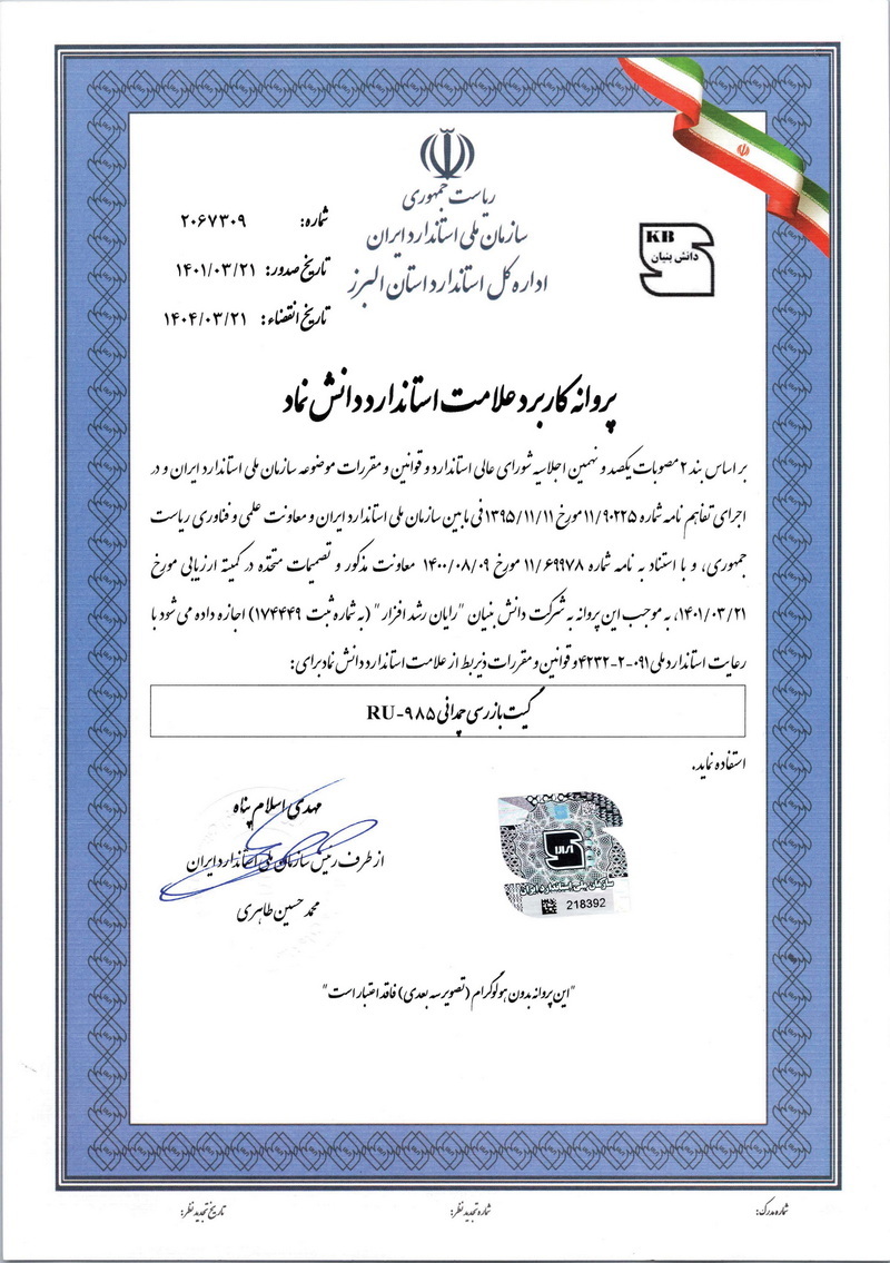 پروانه کاربرد علامت استاندارد دانش نماد RU985