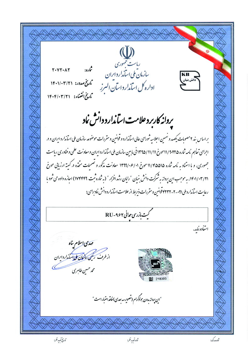 پروانه کاربرد علامت استاندارد دانش نماد RU962